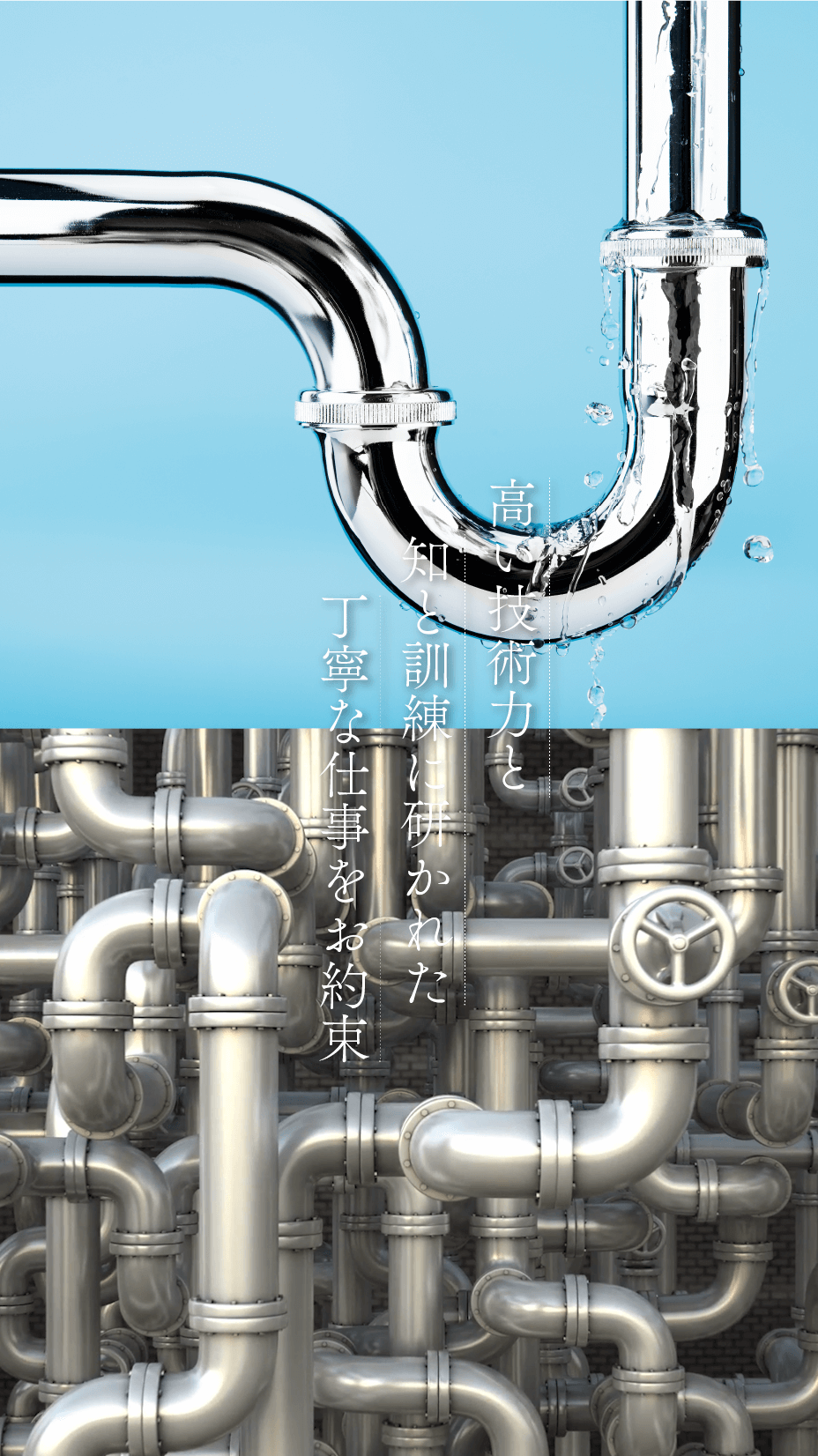 水道工事のプロ集団としての誇りを持ち、正確な技術と経験を活かし、ライフラインを守り続けて参ります。